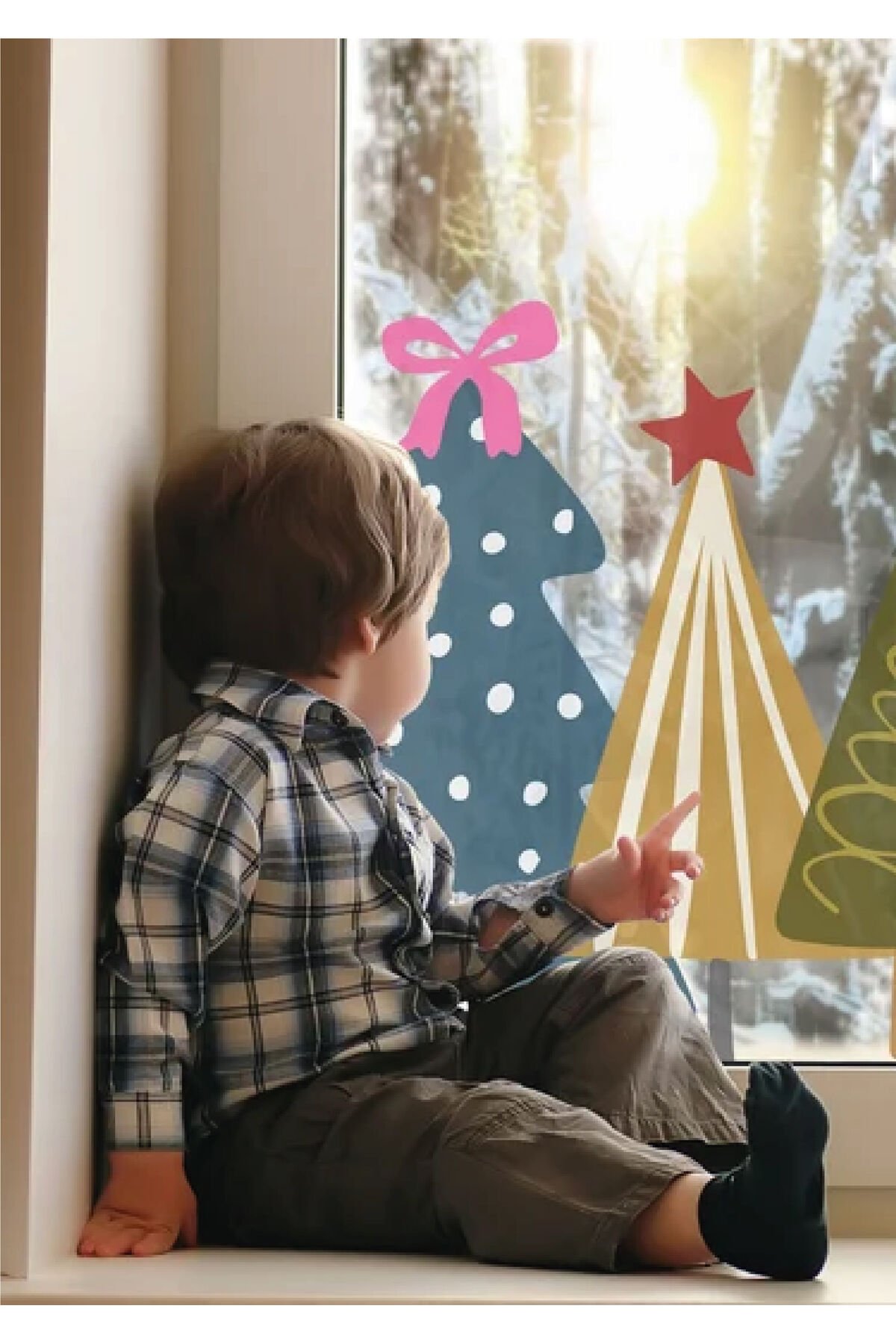 Yılbaşı-Süslü Çam Ağacı Çocuk Bebek Odası Sticker Seti , Yılbaşı Süsü Yeni Yıl Kış Konsepti -
