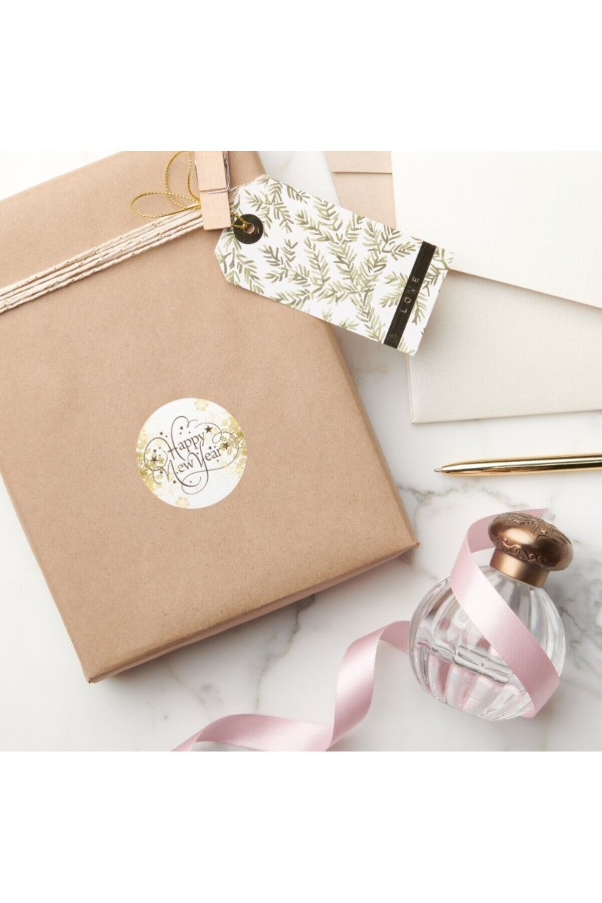 Yılbaşı Temalı Happy New Year Hediye Paketi Sticker 20 Adet (Gold Happy New Year) -
