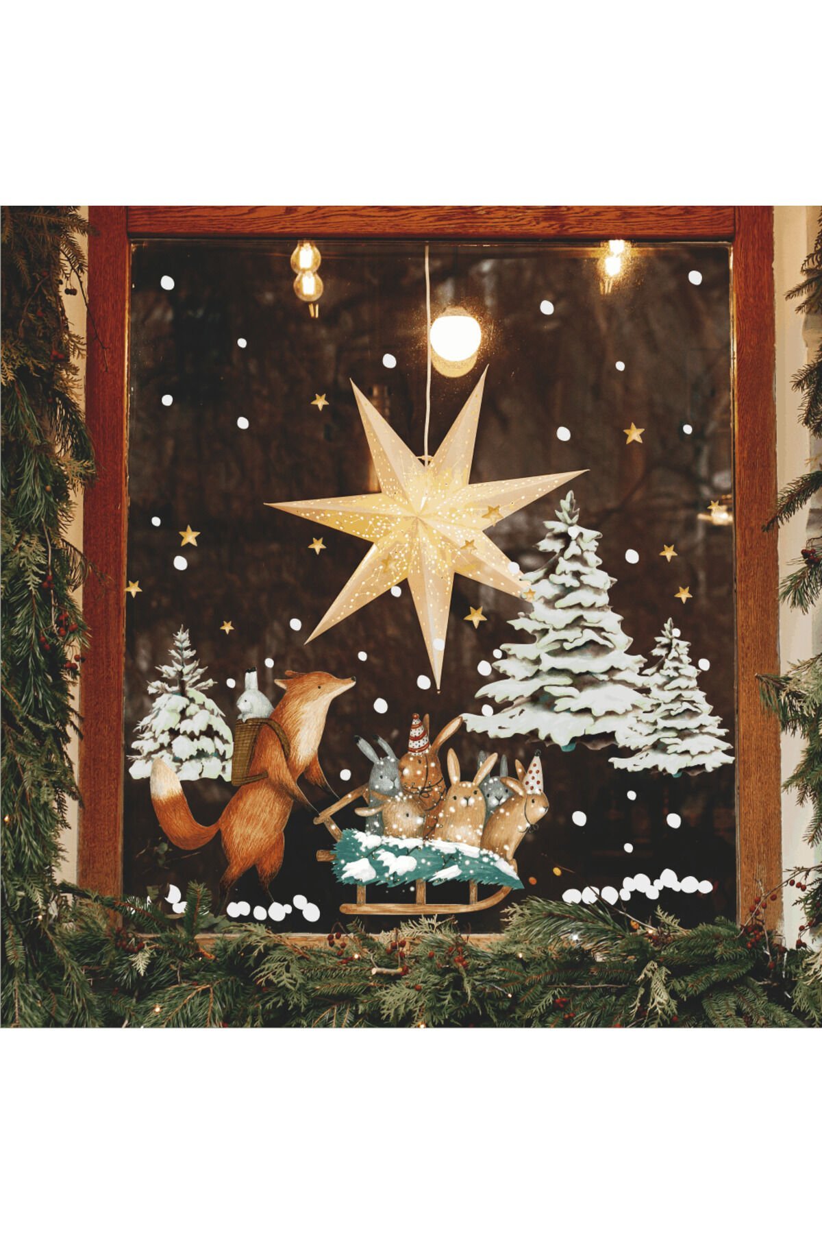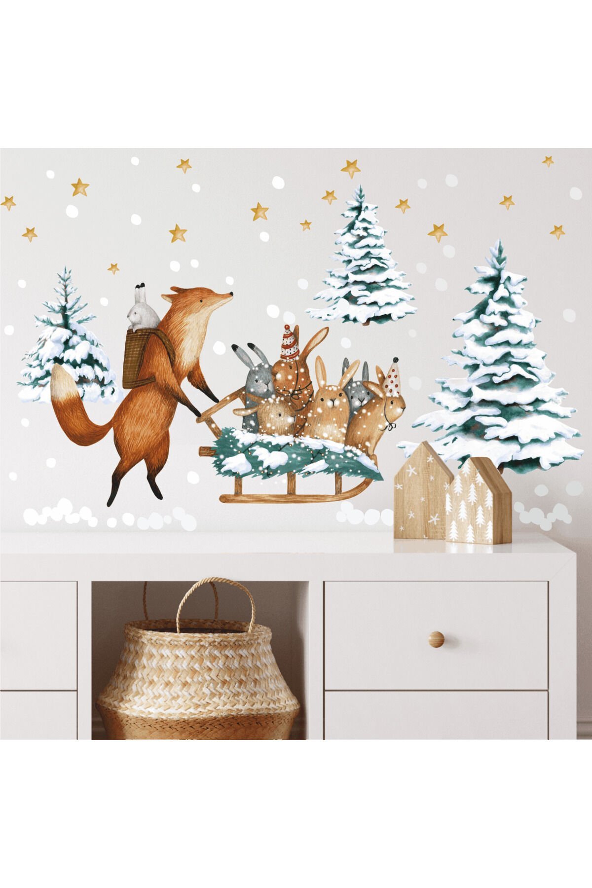 Yılbaşı-Tilki Ve Tavşanlar Çocuk Bebek Odası Sticker Seti , Yılbaşı Süsü Yeni Yıl Kış Konsepti -