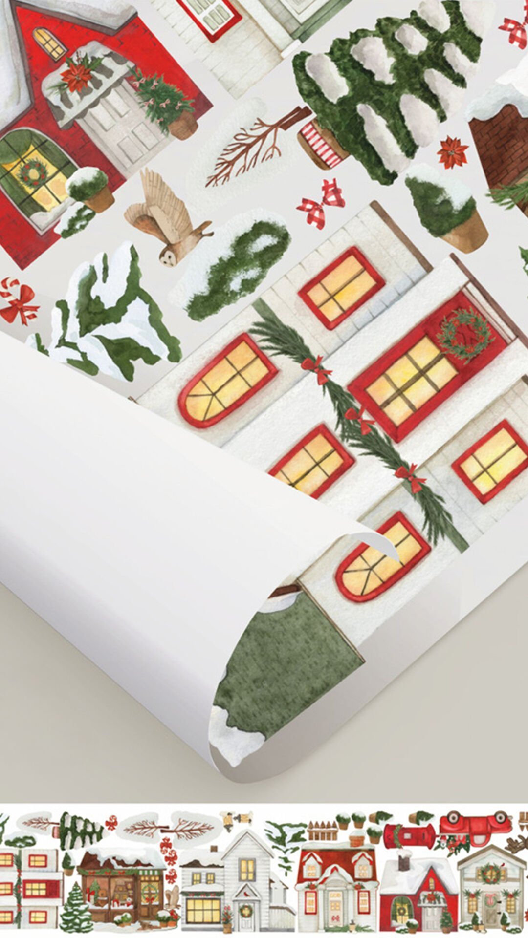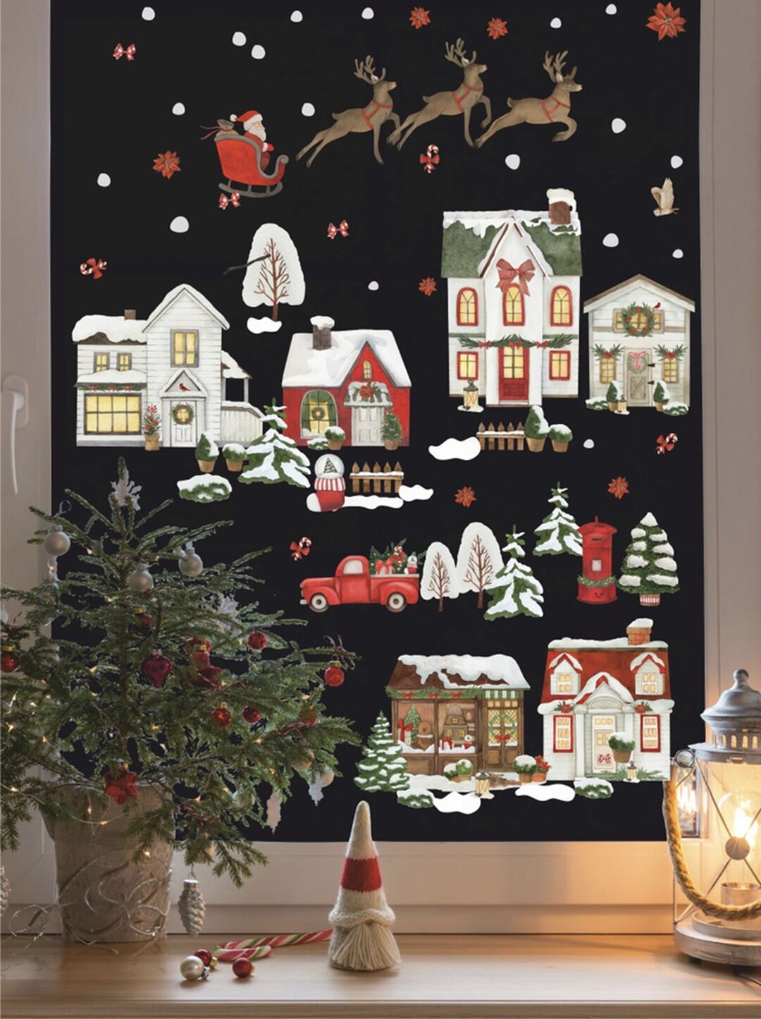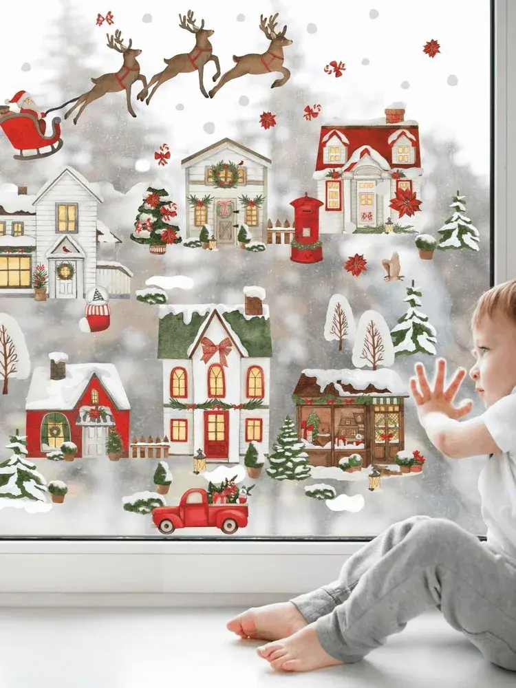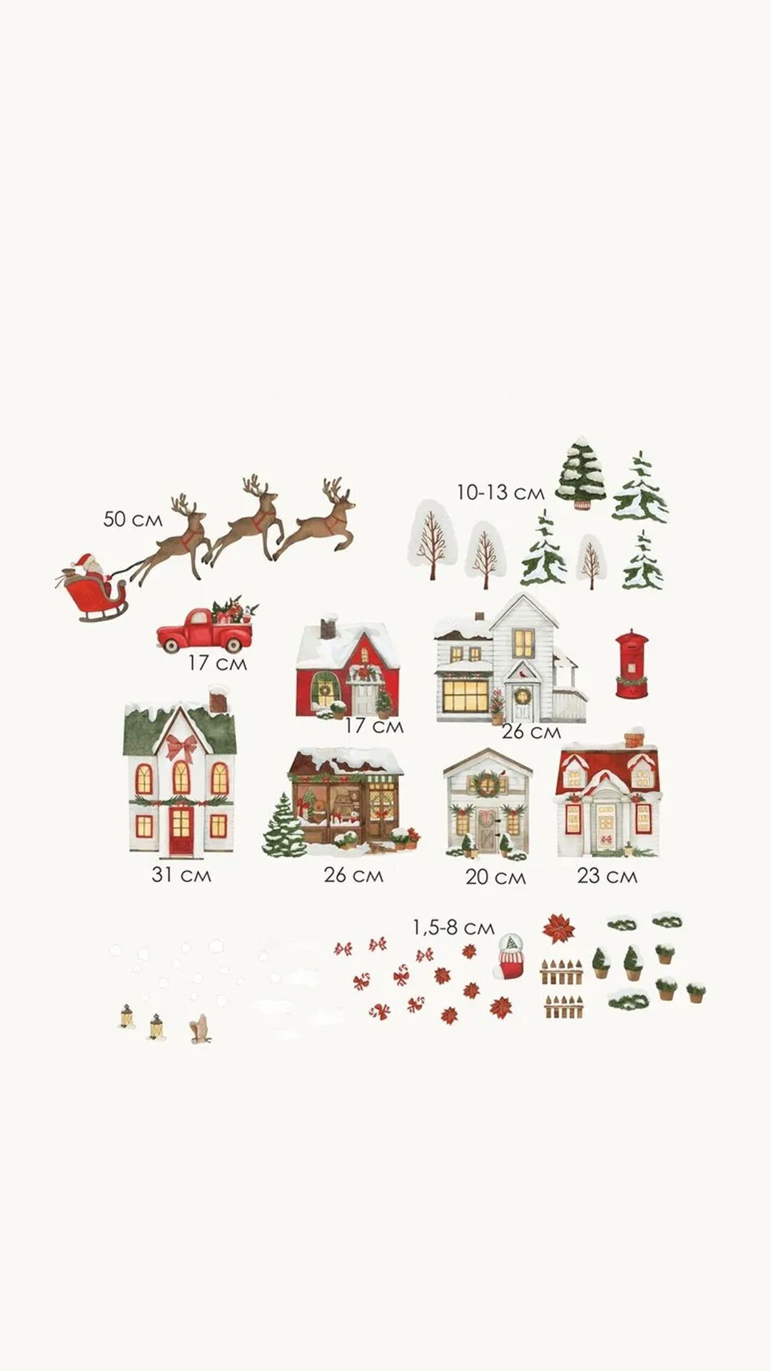 Yılbaşı-Yılbaşı Kasabası Çocuk Bebek Odası Sticker Seti , Yılbaşı Süsü Yeni Yıl Kış Konsepti -